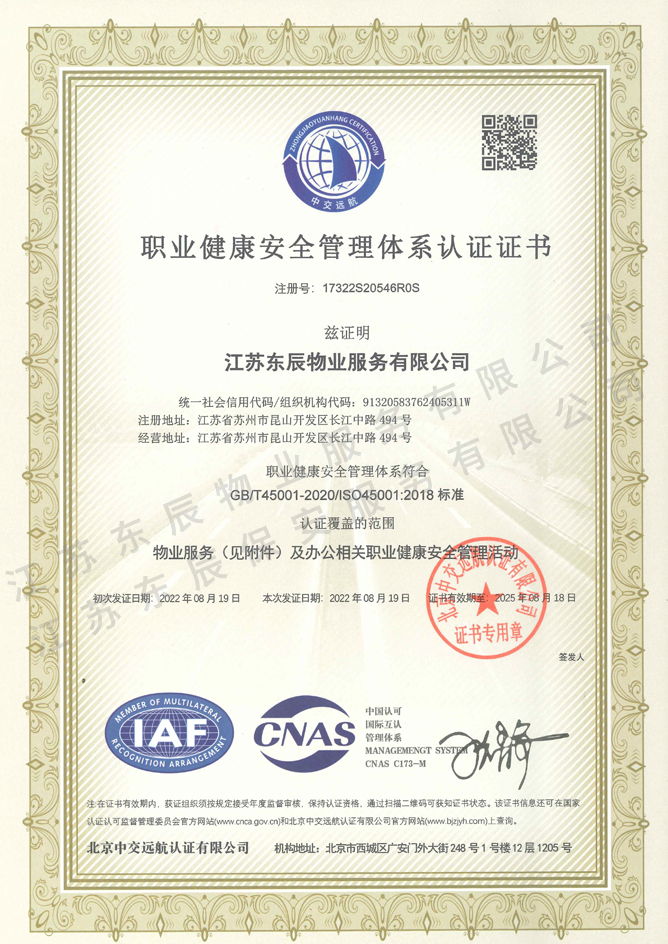 2022-2025年職業(yè)健康安全管理體系認(rèn)證證書(shū)